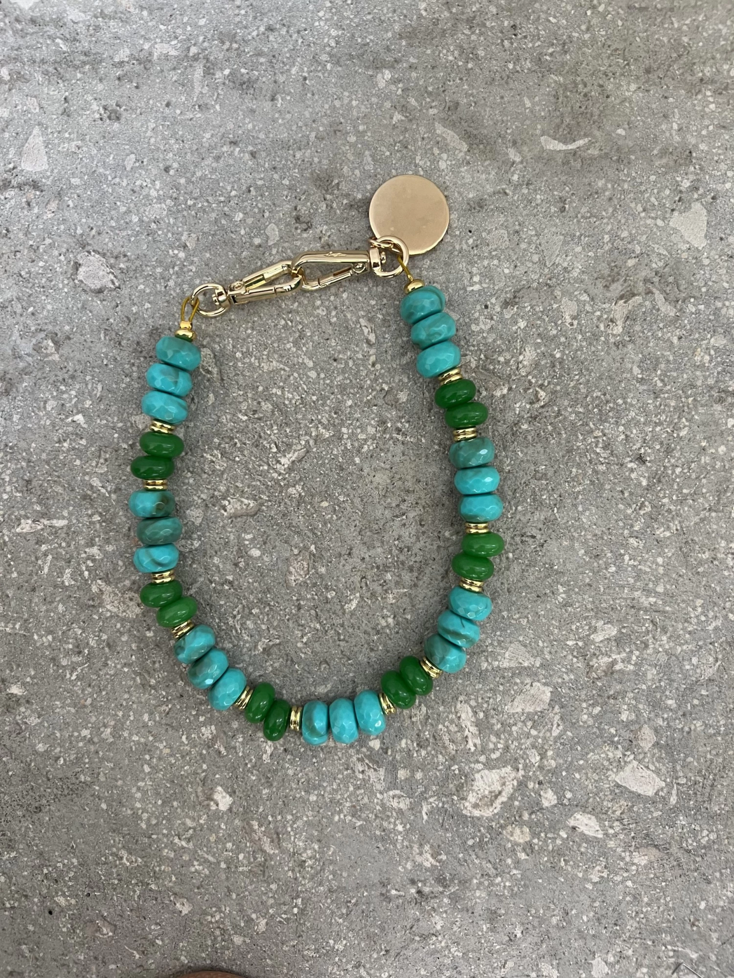Bijoux collier Eidel 40 cm perles bleues et vertes mousquetons dorés