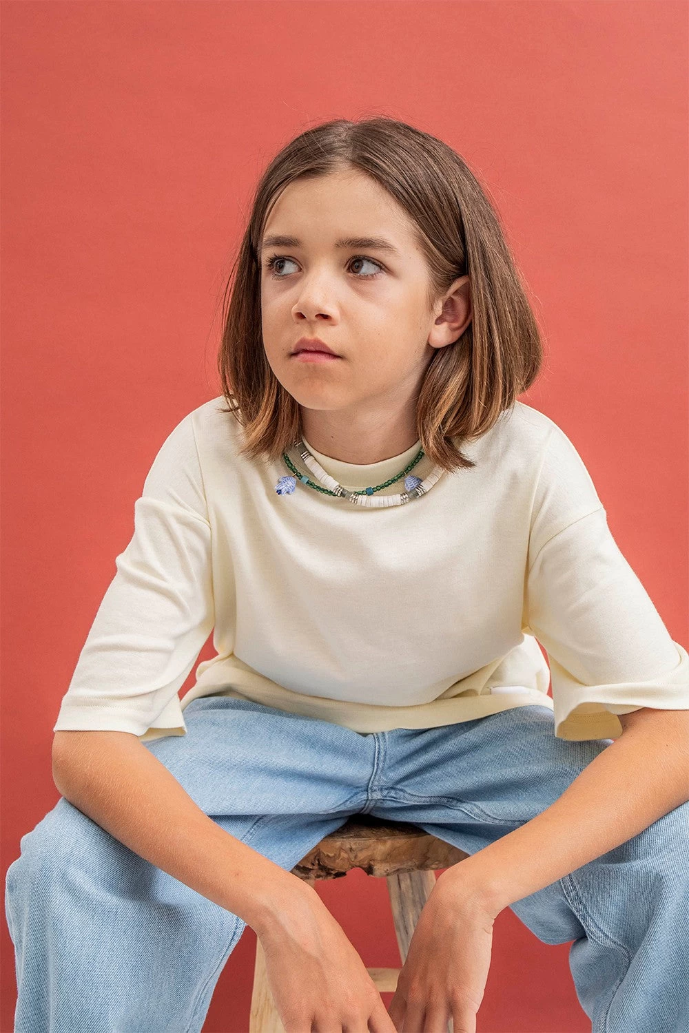 Bijoux collier Koda 40 cm perles vertes et charms poissons mousquetons argents