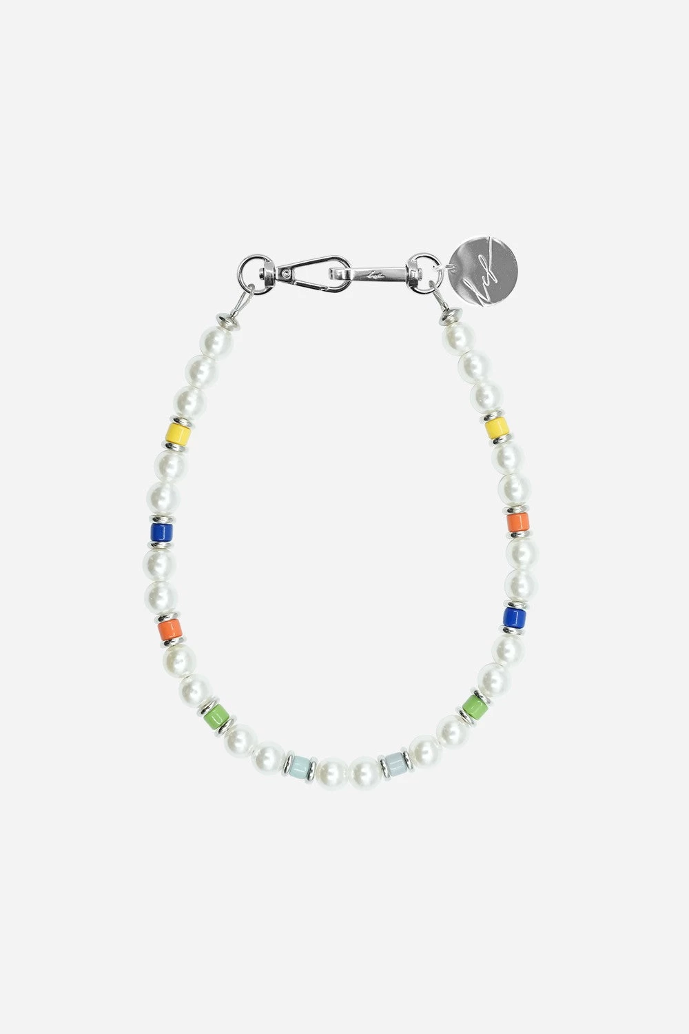 Bijoux collier Mushu 40 cm perles nacrées et multicolors mousquetons argents