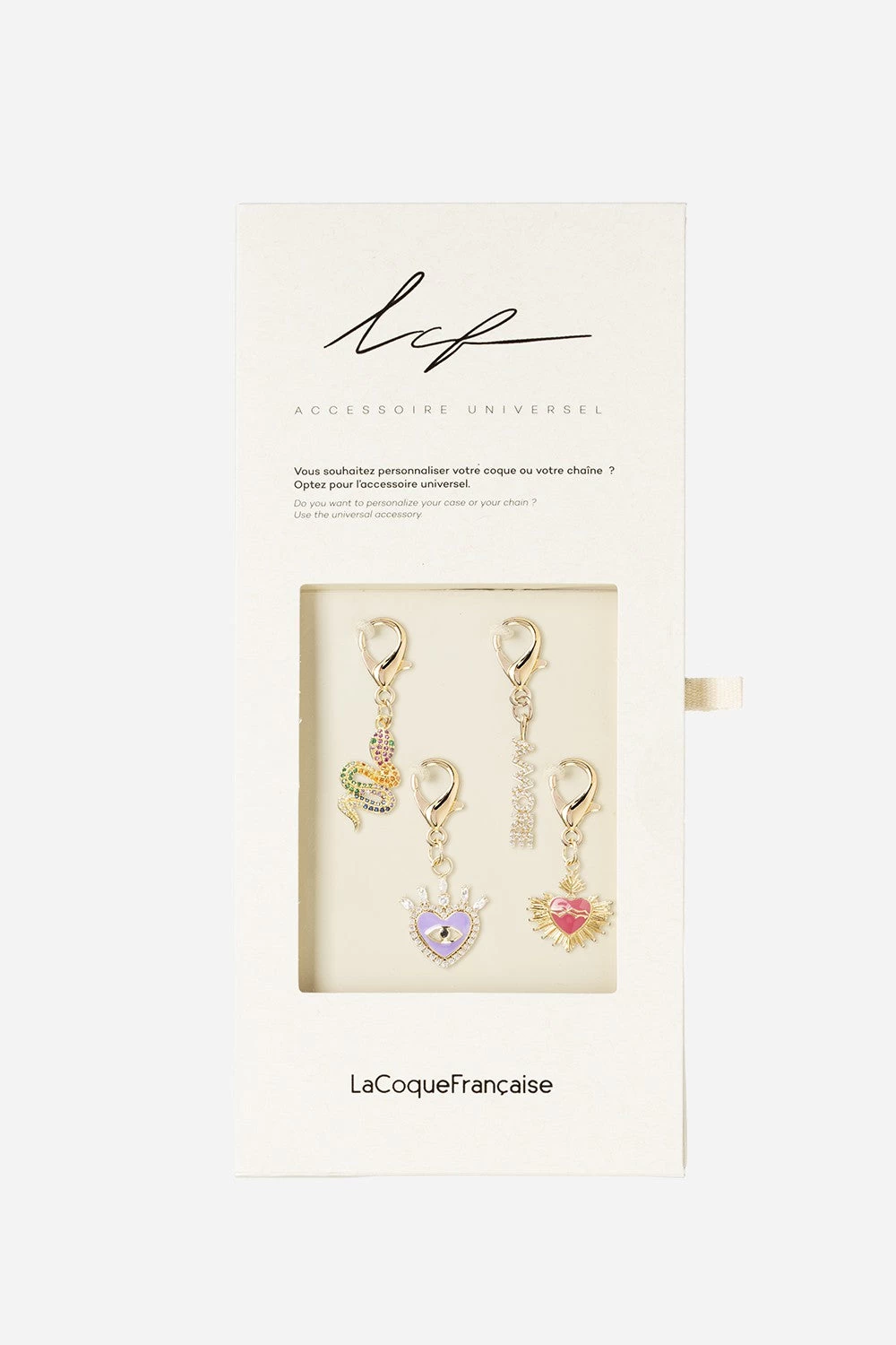 Découvrez nos charms, le détail parfait pour personnaliser vos chaînes de téléphone tout en les gardant à portée de main. Offrant une variété de styles, des motifs fantaisistes aux designs minimalistes, nos charms vous permettent d’exprimer pleinement votre style et votre personnalité. Que vous optiez pour nos chaînes à maillons, telles que notre modèle Sona, ou nos chaînes en tissu, comme le modèle Della, nos charms en acier inoxydable disponibles en doré ou argenté apporteront une touche d’élégance à votre chaîne.